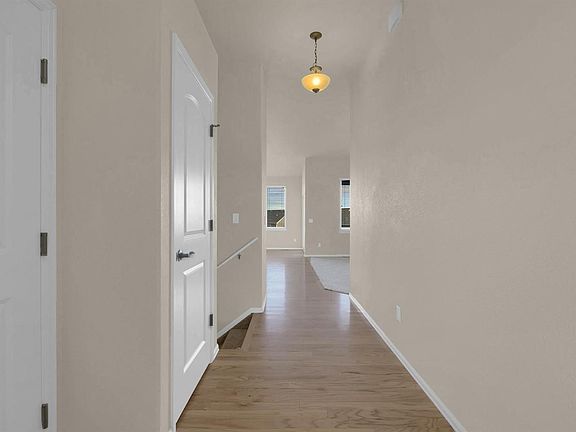 Look no further! This picture perfect walk-out ranch is main level living at its finest! This impressive home is 2 years new, with numerous upgrades and plenty of living space throughout. It faces northwest, offering a view of Pikes Peak from your front step. Hardwood floors continue from the entry to include the kitchen and dining area. The kitchen boasts stainless steel appliances, a pantry, granite counters with tile backsplash, and bar seating. The spacious main level master bedroom is complete with master bathroom suite with dual sinks and spacious walk-in closet space. The open concept living room is wired for surround sound with large windows throughout the main level allowing plenty of natural light complete with quality wood blinds. The unfinished lower level provides huge potential living space with a walk-out patio door to the backyard. Yes, central air is included along with radon mitigation system and water softener. The lot is over a quarter acre located at the curve of the cul-de-sac, giving ample space for backyard activities surrounded by a full privacy fence with solar lighting. Beautiful house ready to be called HOME!
