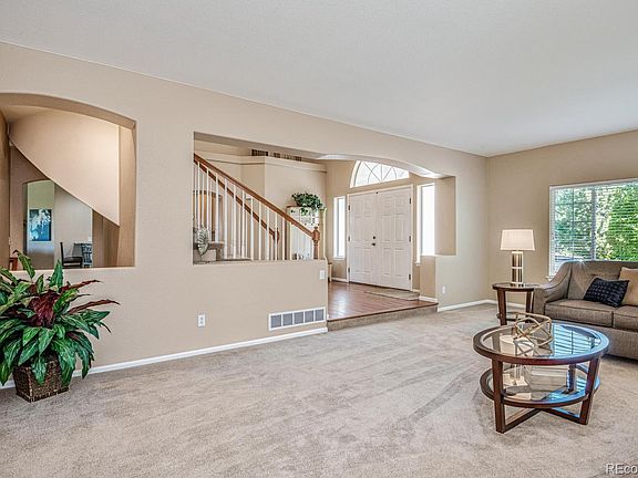 Impeccable two story home in highly desired Broadlands neighborhood. Spectacular lot backing to open space and trails for endless privacy and views. Private lot with mature landscaping, stamped concrete patio with built in kitchen, stone wall, great views of open space that is fully fenced. Grand entry way with spiral staircase, wood floor entry, open floor plan with wonderful entertaining spaces throughout. Gourmet kitchen with a breakfast bar, kitchen island, 42 inch maple cabinets, granite slab countertops, pull out drawers, GE Monogram professional gas cooktop, double ovens and an eating space overlooking the serene back yard and open space. Large family room with gas fireplace that is open to the kitchen. Large wet bar in family room with bar and plenty of cabinets. This is an entertainers dream floor plan! Main floor bedroom/bath combo perfect for in-laws or guest suite. Spectacular master suite with 5 piece bath including jacuzzi tub and walk in shower, walk in closets, coffered ceilings, Juliet balcony and so much more. Loft plus 3 additional large bedrooms on the upper level. Great basement with expanded basement that features a large recreation room and plenty of storage. This type of lot does not come available often!!!