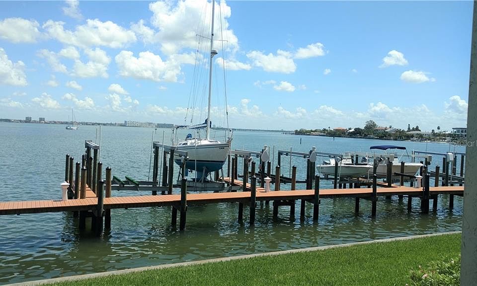 Are you looking for a waterfront home with a boat slip and spectacular open water views? Welcome to Mirabella, an exclusive community of townhomes in St Pete Beach right on Boca Ciega Intracoastal waterway. This 3 bed, 4 bath townhome has expansive wide open water views all the way to Tropicana Field in St Petersburg! Pull up your sailboat to the owner's boat slip no 7 and take in the water views from the porch or 2 balconies, or watch the summer storms roll across the bay. This home is well laid out with 3 bedrooms, tons of closet space, a laundry closet, a large integrated 1 car garage and a den on the first floor with full views of the water. The den could be turned into a fourth bedroom with the addition of a closet. The community has a pool and Mirabella is only 10 minutes walk to the white sands of St Pete Beach and the Gulf of Mexico. There are bars and restaurants within a short walk as well as Dolphin Village Shopping Center and a major grocery store. 15 minutes drive into St Petersburg and just 35 minutes to Tampa International. Come see today!