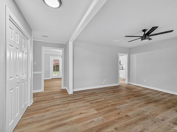 Welcome to this charming ranch-style home that's been thoughtfully updated and is ready for you to move in. Inside, you'll find fresh paint throughout, brand-new luxury vinyl plank (LVP) flooring, updated lighting and ceiling fans, and fully renovated bathrooms featuring new toilets, vanities, and a modern shower stall. The kitchen also has newly painted walls and cabinets, new crown molding, lighting, granite counter tops, subway tile backsplash, new sink with Kohler faucet, and LVP flooring. Major upgrades also include a new water heater and roof, and the HVAC was just serviced, offering peace of mind and long-term value. Carport roof was recently replaced. Out back, there's a detached garage and a workshop—ideal for hobbies, storage, or extra workspace. The home is perfectly located just minutes from Pensacola State College and provides quick access to the interstate. You're only 30 minutes from downtown Pensacola and 40 minutes from the white-sand beaches of Navarre and Pensacola Beach. Enjoy the convenience of being situated between the shopping and dining hubs of Milton and Pace. Military families will appreciate the close proximity to NAS Pensacola, Spencer Field, and Whiting Field. For nature lovers, the Arcadia Mill Nature Trail and creek are located several blocks further into the subdivision, while the scenic Blackwater River is just a short drive away—perfect for outdoor adventures like kayaking, hiking, and picnicking. Don’t miss your chance to own a beautifully updated home in a location that truly has it all—comfort, convenience, and natural beauty. ***SELLER WILL CONTRIBUTE TOWARD CLOSING COST TO BUYER, CONTACT THE LISTING AGENT FOR MORE INFORMATION."***