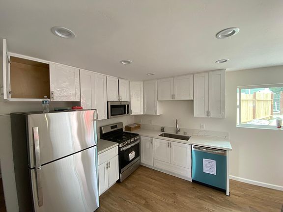 Brand new, just finished building two bedroom one bath house. Small yard with lemon tree and picnic table. Two parking spots behind gated entryway off street. Very safe neighborhood right off the freeway. Washer and dryer in unit as well as for kitchen with courts countertops. Renters are responsible for utilities. No smoking. Renters insurance required.