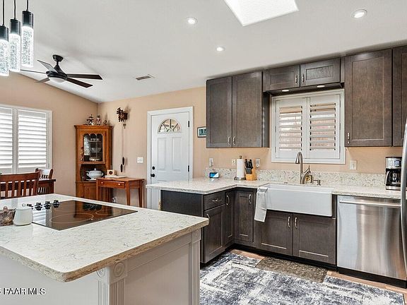 Incredible views, beautifully remodeled, and move-in ready! The main level features 2 bedrooms, 2 baths, new flooring, cabinets, counters, and newer appliances. A fantastic covered deck is perfect for enjoying sunrises and sunsets. The downstairs offers 649 sq. ft. of walk-out space with 1 bathroom, bedroom area, living room, and kitchenette. With its own separate entrance, it's ideal as a mother-in-law apartment or rental. A 20x24 garage provides ample storage, along with a covered front entry, Trex decking, and a nicely landscaped yard with a 5-foot privacy fence. Plenty of room for all your toys!Well Priced! Move In Ready! Easy to Show!