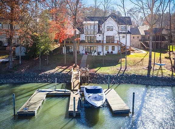 Price Reduced $100,000 ! This gorgeous Modern Farmhouse home was designed by ALB Architecture to celebrate Lake Norman and the vibrant lifestyle here, in a culdesac, with over 190' wide of deep water shoreline, a 40' x 32' dock with a 10' x 16' pier, the sunsets here will amaze you in the evenings. Yes, a Pool can easily fit in the backyard. No Bridges and No no wake zone to contend with in this cove. Traditional white siding with elegant black windows and metal work, combine with true attention to detail throughout the home. From the theater in the basement and stained concrete floor in the entertainment area, real white oak floors throughout the main level, and classic white kitchen cabinetry a 48" Thermador dual fuel range, and tons of light and delicate granites and marble counters this home needs nothing. The oversized three car garage accommodates a full size pickup easily and the concrete driveway easily allows for turnaround and extra cars when needed. Listing agent is owner.