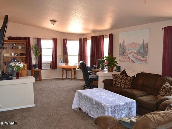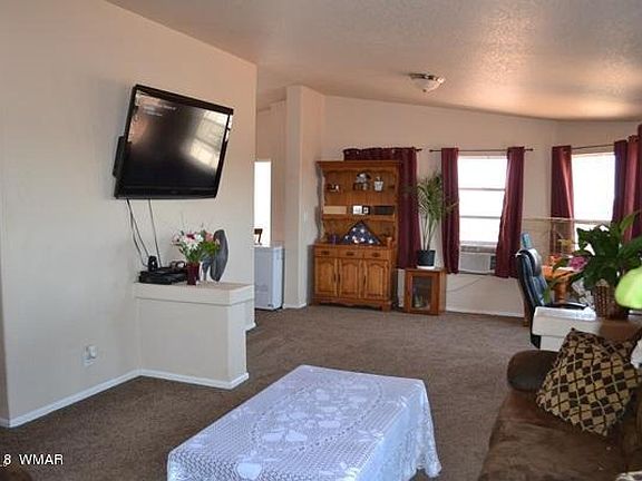 Located approx. 14 miles East of Snowflake on mostly paved roads, good access on less than 1 mile of dirt road. Nicely treed property that is fully fenced with some cross fencing. The house is set back from the road which provides lots of privacy. The home is well maintained, with a deck off the front and fenced front yard with dog run. The home sits on a block foundation, with tie downs. Two window A/C units stay. There is an RV hook up located away from the main house that has water, power and it's own septic system. Also situated away from the main house is a covered 2 bay coral. The property also benefits from a 2 car car port and 10x12 Tough Shed. The well information is included in the documents tab.