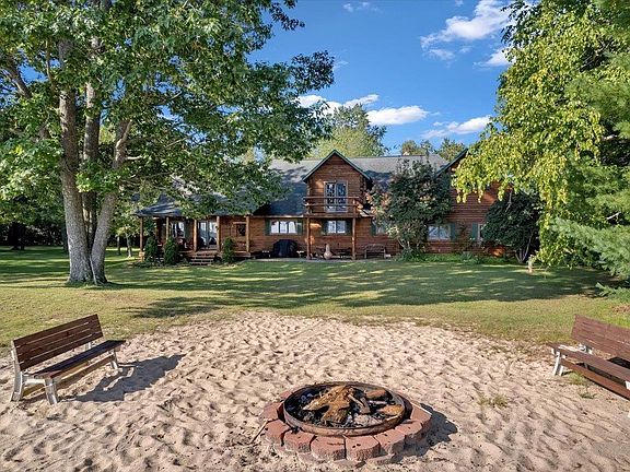 All Sports Long lake is the start of this up north dream! Just freshly stained and looking great! Level to the water and 3 acres! unheard of on this size lake, and thats only the beginning! add an attached garage 44 x24 with storage above and porches, decks, all your focus on the peaceful surroundings and water views! So Private and yet on one of the most sought after lakes our area has to offer, so may extra features unable to list them all here but start with custom built full log home! on 3 secluded acres! open air concept with enormous great room w cathedral ceilings and Colorado rock fireplace! Beautiful hardwood floors! formal dining!, surrounded by windows to bring the outside in! Large country kitchen with storage galore! snack bar for you to sit at your counter and enjoy coffee or cocktail! while watching the meal prep in this gorgeous kitchen! 4 car at least att garage, heated and insulated and storage above, room for your vehicles boats snowmobiles, all the toys! Anderson windows! 2 bedrooms pls! a 30 x 30 loft could be multiple sleeping areas! energy efficient nat gas heat and also has wood furnace in garage that will heat the whole house and garage if you desire!covered porch and deck! huge laundry/utility room , lots of storage! this level parcel has a sandy beach and panoramic view of the largest part of the lake! room for gardens, tons of parking, so may possibilities! and no houses too close to you! unique to say the least! survey in documents