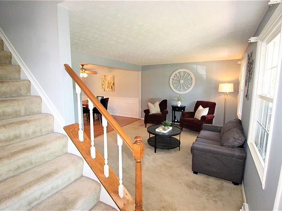 Welcome Home to this Beautiful 4 Bedroom Colonial with Charming White Country Front Porch to Sit Back and Relax!With Over 2,000 Square Feet, This Home has Everything Youâve Been Waiting For and More! Freshly Painted with Modern Neutral Colors, Bright and Airy Open Floor Plan with Numerous Windows! Love the Kitchen with Island, Pendant Lighting and Breakfast Bar All Open to Gorgeous Dining Room with White Wainscoting. Right Off the Kitchen is an Amazing Large Vaulted Family Room Perfect for Gathering with Family and Friends! Glass Paneled Door leads to Back Patio and Large Private Wooded Fenced in Backyard with Barn for Storage. Recently Remodeled Bathroom with Four Bedrooms Complete the Upstairs. Siding is Just 3 Years Young! This Home will Have You Falling in Love and Wonât Be Here Long!