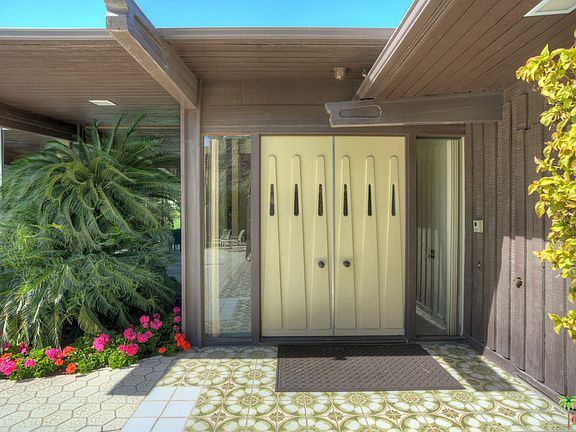 Mid Century Modern Gem in the Heart of Eldorado C.C. An Ira Johnson designed home full of amazing organic and streamlined wood beams stretching throughout home. Great room w/fireplace, massive stone wall and sunken bar features floor-to-ceiling glass bringing light and views of trees, fairways and the mountains beyond. Dining room, breakfast nook and spacious kitchen with a meat locker/pantry flow off the main living area. Maid's quarters has one bedroom and bath off of kitchen with separate entrance. The main house has 2 guest suites with views of golf course, pool and mountains. The master bedroom is spacious with walk-in closet and large bright bathroom. The private guest house has an open bedroom/living room with fireplace, kitchenette, walk-in closet and bathroom with views. The pool area has multiple seating areas perfect for your next get together or party. Many great clean lined architectural details inside and out. A must see for the Mid Century Enthusiast!