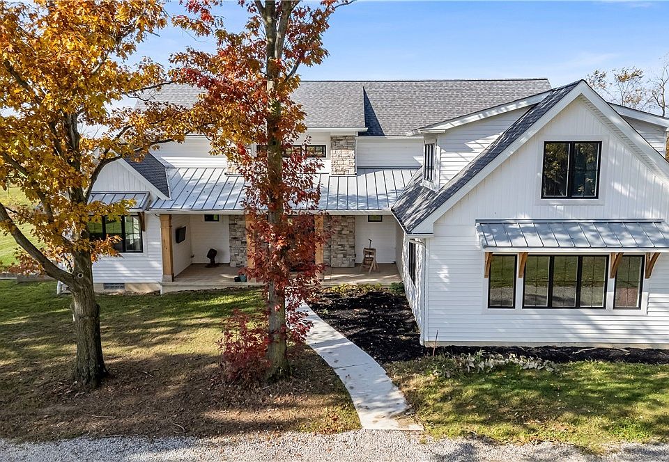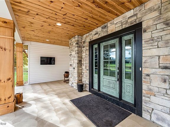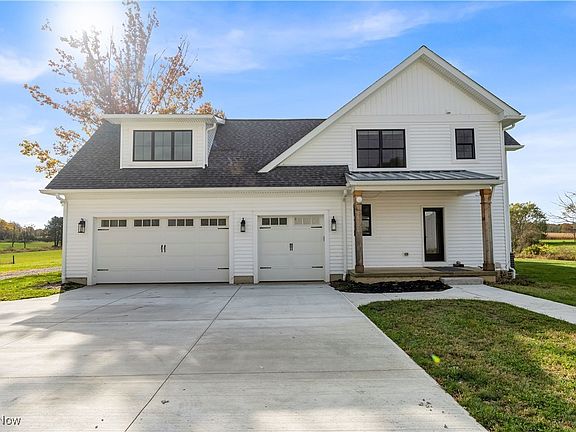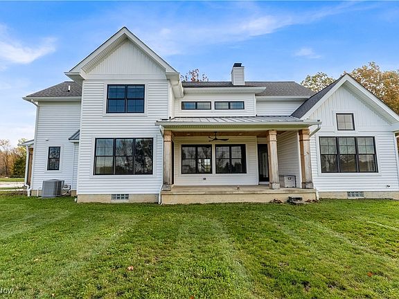 A must see 3 year old like new architecturally designed 4278 sq ft home located on 11.03 acres. This quality custom built home with open floor plan will exceed any expectations of what an executive house should be. The gourmet kitchen features Granite and Corian countertops, a huge island, stainless steel Thermador appliances, white oak floors and custom cabinets. 9 ft ceilings are common throughout the home but the large great room with stone wood burning fireplace has 18 ft ceilings that add a wow factor to the home. Large Pella windows throughout the home allow in plenty of natural light and stunning framed views of the property. The master suit has vaulted white wood ceilings, stunning views, a custom finished walk-in closet, and a spa-like bath. On the upper floor there are 2 bedrooms that share a Jack & Jill bathroom, a loft, 2nd laundry, and finished bonus room. The walk-out lower level is also finished with its own patio, full bathroom, 1-2 bedrooms, family room, garage stairwell access and plenty of open room. As you enter the 1st floor the finished mud/laundry room has tile floor, large pantry, full bathroom, and custom cabinets. This 11 acre property is ideal for horses or other hobby-farm projects with fenced pastures and 5 open acres of alfalfa mix hay. The clear span 40x100 barn could also be an indoor riding area. The barn was initially run as a certified Grade B goat dairy and continued with registered stock. This included a separate heated and cooled area, water, electric with separate septic, a full bathroom, kitchen area and rooms that could be for farmhands/guests. After a long day sit on one of the porches or patios overlooking the scenic property and relax in quiet tranquility. Located just 9 miles south of Wellington it is close to all major highways and is only a 45 minute drive to Cleveland Hopkins Airport. The highly rated Rural school districts are a great place to raise a family with lots of student activities.