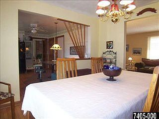This exceptionally well maintained home shows the pride of home ownership of more than two decades by the current owner. A unique combination of new and vintage features makes this a delightful property ready for a new owner. The home backs to park space and has a large rear yard. The brick home is set back from the road and boasts a wide macadam driveway with one car garage and mature landscaping. A new powder-coated link fence was recently installed. The French doors off the dining room and laundry room all weather door are also new. Certainteed replacement windows were installed within the last year. The home boasts hardwood and ceramic floors, wood stove insert for fireplace, skylights, and covered deck; the hot tub is also included! Don’t miss this great home! The covered porch opens into the foyer via a beveled glass storm door. The foyer (8’ x 17’) has a ceramic floor, handy coat closet, octagonal window and small chandelier fixture. The wooden staircase leads to the second floor. Living room: 18’8†x 12’7â€: features hardwood floors, two windows overlooking the front yard, and telephone connection. This room is open to the dining area. A built-in half-wall sets between the foyer and living room. Dining area: 12’ x 13’: has hardwood floors, a chandelier and new French door opening to the covered patio and rear yard. Eat-in Kitchen: 10’ x 14’: features ceramic flooring, Formica countertops, wood cabinets, and vintage booth with stools. The Maytag electric range, Maytag dishwasher, Kitchen Aid refrigerator, and portable microwave convey. There is a double bowl sink (with side sprayer) set under a window overlooking the back yard. The wooden cabinets have a lazy susan in the corner for additional storage lighted ceiling fan has been installed in the room and a florescent light provides task light over the sink. Family room: 12’ x 21’: boasts a brick hearth with wood stove insert. There is a blower on the stove that circulates warm air thro