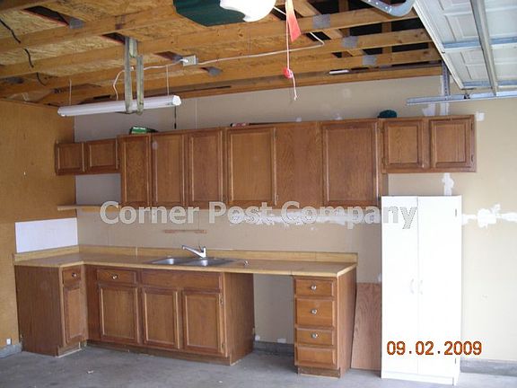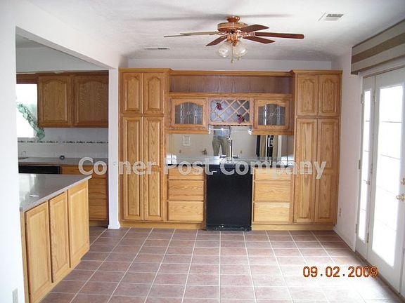 The front yard is Xeriscaped with shrubbery. The spacious back yard is very neat and fully fenced. A space to accommodate at least a thirty-five foot RV is provided. A small storage shed, a lily pond and Xeriscaping complete the back yard scene. The over-size two-car garage is equipped with abundant cabinets/shelving/counter for storage and electric door opener with remote control. This three bedroom home interior has been completely remodeled. All floor coverings in front room, kitchen, bathrooms, hallways, and one bedroom are of ceramic tile. Master bedroom and guest room are carpeted. Beautifully remodeled Island kitchen is professionally done with sliding shelves and flo-thru work area. Electric stove, refrigerator, garbage disposal, microwave and a built-in beer 'pony-keg' with hydrant. Washer and dryer are included with the provision if it needs repair tenant has three options: 1) repair unit, 2) replace unit or 3) leave unit broken. Pets are allowed with restrictions.
