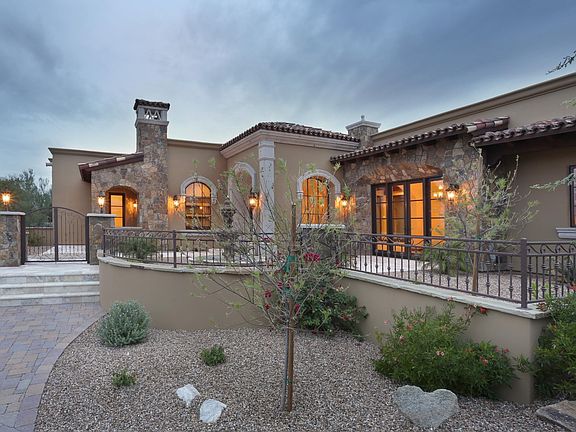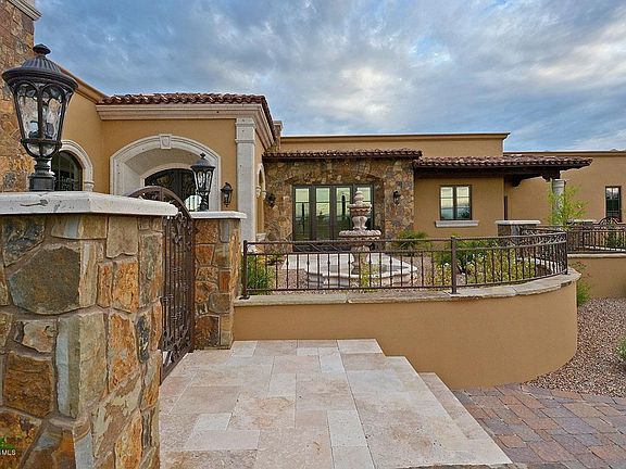 For more information on this property, contact the Listing Agent, Robin Sue Kaiserman at (520) 918-5411 or robinsue@robinsue.com. BRAND NEW TUSCAN STYLE HOME BY GDV CUSTOM HOMES,ON TOP OF A RIDGE W/CITY & MT VIEWS IN GATED CATALINA FOOTHILLS EST#10,DRAMATIC FOYER W/GLASS & IRON ENTRY DOORS, 15 FT. DOMED CEILING, EXQUISITE LIVING RM W/CANTERA FIREPLACE, 10 FT. HIGH DISAPPEARING GLASS DOORS,GOURMET ISLAND KITCHEN W/ ALDER CABINETS,GRANITE COUNTERTOPS, WOLF 6 BURNER GAS RANGE AND 2 OVENS, 2 DISHWASHERS, SUBZERO,WINE COOLER, BREAKFAST AREA, BEAUTIFUL VERSAILLES PATTERNED TRAVERTINE FLRS, FAMILY RM W/WOOD PLANK FLRS,3 BDRS + EXEC STUDY W/FP & WOOD FLRS(OR 4 BDRS), MSTR SUITE W/ FIREPLACE, LUX BATH W/MARBLE SLAB COUNTERTOPS,CLAW FOOTED TUB, LG WALK-IN CLOSET,EXERCISE RM. 8FT.DOORS & WOOD CLAD WINDOWS THRUOUT. FAB BKYD W/POOL,SPA,SWIM UP BAR, FP,2 CANTERA FOUNTAINS,BBQ,CITY & MT VIEWS.FLOOR PLAN UNDER PHOTOS/VIRTUAL TOUR.