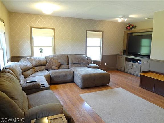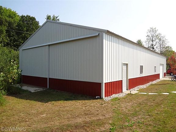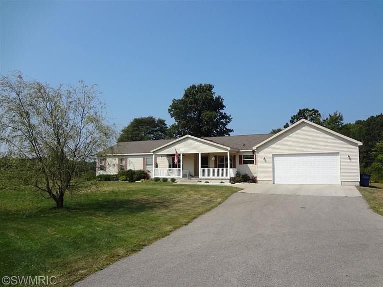 Fruitport Township, Large Ranch, over 2300 sq/ft on five acres with a 40 x 60 Amish Pole Barn. Home features a generous family room and living room, with sliders to a deck across the back of the home. Four Bedrooms, two and half baths, master suite with private bath. Kitchen with center island and drop in stove. Formal dining room. Sunny and bright this home sits back off the road with a paved driveway. Perfect mix of privacy and convenience.