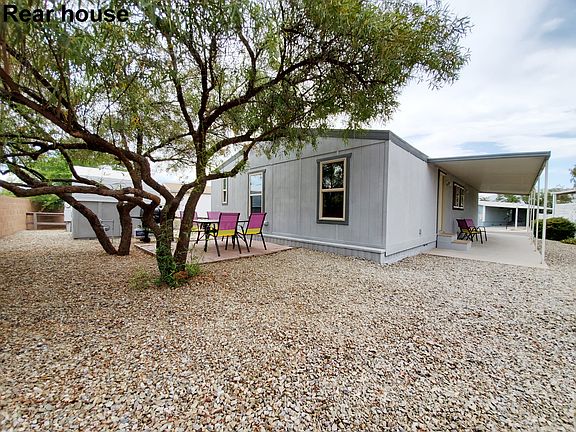 Home info: General -Completely and newly remodeled -1990 Cavco -Double wide -1248 Square feet -3 Bedrooms, 2 Bathrooms -Central A/C system -Awning covered patio -Awning covered driveway -2 large his and hers storage sheds -Paved rear patio and grill area Interior upgrades -Fresh coat of paint -Walls and ceiling tape and textured -Ceiling crown molding trim -Double panel windows -High performance window tinting -Modern chrome remote controlled ceiling fans -House grade cabinets in kitchen and bathrooms -Granite countertops in kitchen and bathrooms -All new modern chrome fixtures and lights -Mirror panel sliding closet doors -Seamless laminate flooring throughout house -House grade doors -Full size shower enclosures -Tiled shower walls from floor to ceiling -Engraved Glass sliding shower doors -Full size High stand water efficient toilets -UL power outlets and switches -Polybutylene plumbing repiped with Pex plumbing lines Exterior upgrades -Roof 2 layer cool coats -Synthetic weather proof stucco -Fresh coat of paint -Low power lights -Front and rear block brick stair cases Additional -Gorgeous mountain views -No rear neighbors, instead view of desert scenery -Low to no landscape maintenance -Spacious corner lot -Split floor plan with master room in rear -Vaulted ceilings Park info -All age community -Luxurious clubhouse -Library with fireplace -Holiday and special event parties -Large meeting rooms -Cable TV available -Kitchen facilities -Laundry facilities -Monitored night entry -Pet friendly -Fitness room -Arts and crafts room -2 pool tables -1 ping pong table -2 pools, 1 heated pool, 1 heated Jacuzzi -Playground -Basketball court -Night patrolling security guards -Separate enclosed storage yard for boats and rvs -A Gated Community -Largest lots in the Tucson area -Lush landscaping -Wide streets with sidewalks -Tennis/Pickle Ball courts -Several picnic areas with barbeques -Shaded ramadas Neighborhood Info -Pantano river -Tucson bmx bike race track -Fantasy island mountain bike Park -Shopping centers and Walmart -Horse riding ranches Budget example: $3500 down payment, $430 house payment, $395 lot rent, $825 total monthly payment. Will pay 3% buying agent fees. Visit www.pantanovista.com to see all this park has to offer, lot fees, finance options, and application for tenancy. Call 5208084025 with any questions or to view.