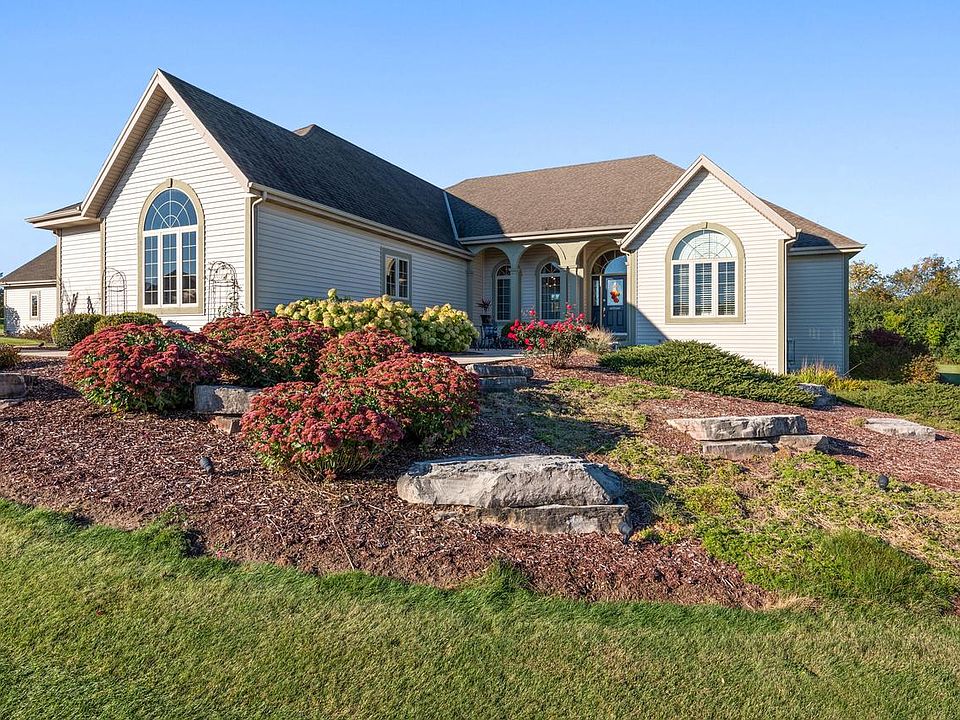 Custom-built ranch on cul de sac in Richfield's coveted Winchester Fields subdivision. Split ranch featuring cathedral ceilings in great room and 9 ft ceilings throughout home. Remarkable layout with large master bedroom including trey ceilings, walk-in master closet, and XL walk-in shower with dual shower heads. Relax in open concept living area with hardwood floors, gas fireplace, spacious kitchen with plenty of counter space, and a sun-drenched sitting area off the kitchen. Main floor includes home office with french doors, first-floor laundry with 3 bedrooms and 2 bathrooms. Extensive storage throughout the home with stairway to loft in heated 2nd garage. Matured landscaped backyard oasis including two tier patio with fireplace and seat wall perfect your entertaining needs.
