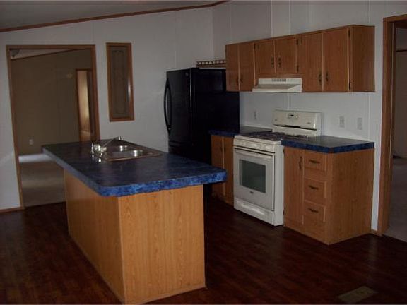 Well maintained ranch doublewide with three bedrooms and two full baths. Situated on .60 Acre, home has an open floor plan. Kitchen with a large center island. Large living room with wood-burning fireplace. There is a garage/storage shed. Natural gas heat, municipal water.Piers are below the frost line.