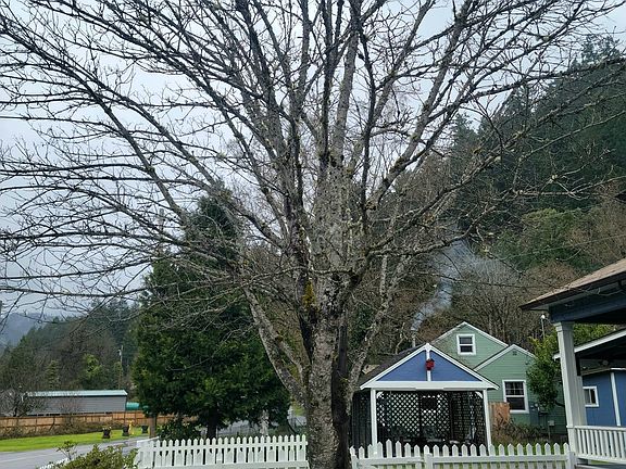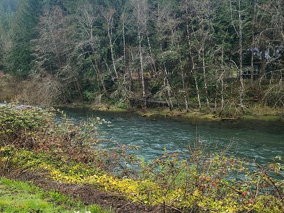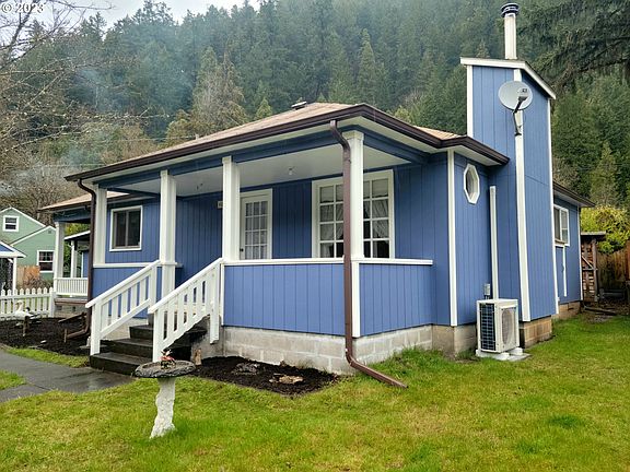 Beautifully updated, N. Fork Willamette River facing 2-BR, 1-BA Craftsman Cottage nestled in the heart of Outdoor Recreation! The Office Bridge (longest covered bridge in Oregon) and infamous Aufderheidi Bi-way are a stone's throw from this enchanting Hemlock sub-division of like-era'd homes, rich w/charm & history from the bustling days as a mill town. This tastefully updated 2-BR, 1-BA home w/double pane vinyl windows & newer min-split ductless system sits on a well proportioned .17 acre lot w/friendship and privacy fencing, lawns w/mature landscaped perimeter, RV parking, charming 10' x 10' gazebo, wonderful tinker sheds, workshops & wood storage and attached carport right off the kitchen entry. Newly painted w/welcoming front & side covered porches, spacious living room w/original hardwood (old growth fir) floor, ceiling fan, large pane window facing the River, port windows to accent Chicago brick-hayed fireplace w/WS insert, hearth & mantle + ext/interior fire wood storage box. New vinyl tile flooring dresses out spacious country kitchen w/FS fridge, range, dishwasher and small island. Dining area with S & W facing corner windows, 1/2 light farm door & wainscot walls. Hallway w/built-in's & pull down ladder give access to semi-finished bonus hobby/storage space w/open ply floor, electric, outlets & work table & shelving. Remodelled bathroom features new tile flooring, ped sink & extended toilet. Utility-mudroom features stand up freezer, washer dryer, HWH & lots of storage space! Master Bedroom w/new carpet & wall to wall closet. 2nd bedroom w/fir hardwood floor, corner windows & deep closet. Truly a piece of history lies in this "corner of the village" home nestled where the sunset glistens on the waters.