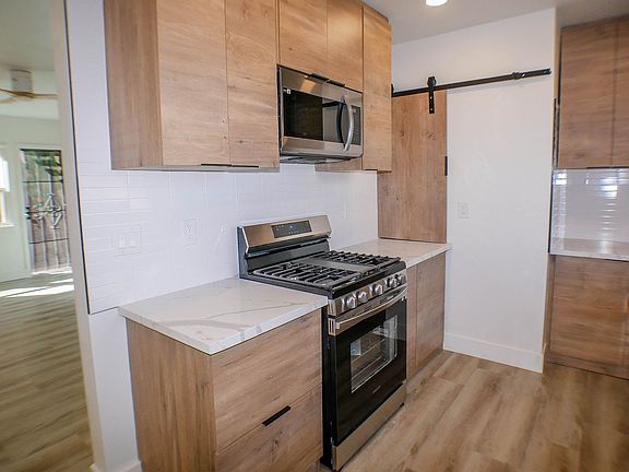 Splendid fixturesBrand-new stainless-steel stoveSubway-tiled backsplashExtra storageBuilt-in microwaveStylish vanityHigh-efficiency mini-split air conditioner