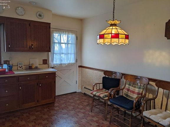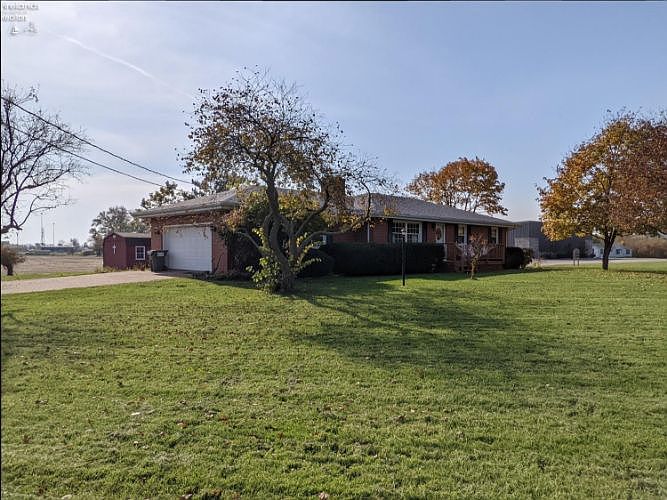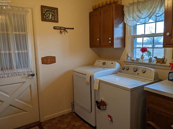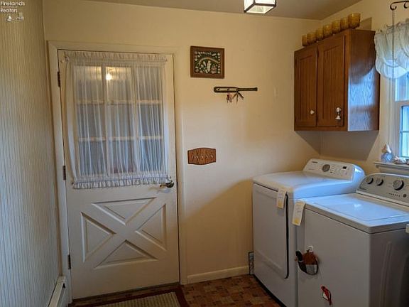 Country Setting Brick Ranch Lovingly cared for solid brick ranch home. Offers 3 bedrooms ( master bedroom with full bath ) and 1 additional full bath. Many updates include newer windows, roofing, hot water heat boiler, and water heater.Inviting living room with gas ( propane ) fireplace, built-in shelfing and pecan wood paneling.Bright, sunny eat in kitchen with the refrigerator and range to remain with the home. Laundry room with washer and dryer.The opportunities are endless with the full basement with wood burning fireplace. The basement received Ever-Dry Water Proofing in 2008 with the guarantee to transfer to the new owner.Attached heated 2 1 2 car garage. The driveway was resurfaced in Fall of 2021.