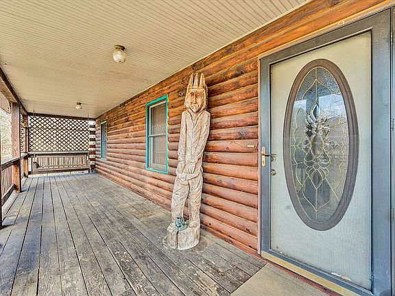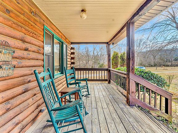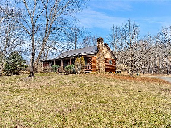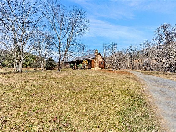Farmhouse-style log home on 6+ acres. Great location only one mile of I-81 in Virginia, between Salem & Christiansburg with a short ten-minute drive in either direction! The perfect home for a family looking for a rustic home in the country. Located on a peaceful farm with spacious, beautiful land, this 3 bedroom and 2 bathroom log home has plenty of space to enjoy. The home features an extra-large, covered porch with swing and rocking chairs, two fireplaces, vaulted ceilings, built-in desk and bookshelves in the office, built-in drawers in the loft, and plenty of storage space. The basement makes it easy to customize your living space. You'll love the creek on the property and the 40'x60' barn nearby which has a round 7 stalls with partial fencing. REQUIRES FLOOD INSURANCE