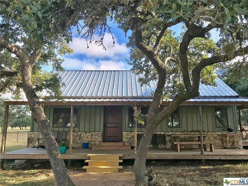30 Acres. This tract offers large mature live-oaks with a scattering of other species, a seasonal creek with shallow pools and multiple fenced pastures with a variety of grasses. The attractive 960 SF 1 bedroom 1 bath home has an open floor plan and covered porches on 3 sides. This structure was designed and built with future additions in mind. The large 30'x52' barn has an office area, a water storage area and tons of storage space with cement flooring and metal roof. This is a beautiful property and lets not forget the comfortable seating among the giant oaks and around the firepit.