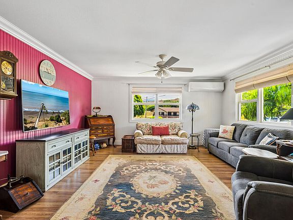 As you approach this home, you are greeted by the lush mango and plumeria trees tucked inside a white picket fence. The minimalist landscape offers ample space for outdoor activities and relaxation. The house itself exudes character, with its classic design elements hinting at vintage Hawaiian architecture.Step inside to discover a warm and inviting interior. The open layout creates a seamless flow between the kitchen and the living area, perfect for both everyday living and entertaining guests.The kitchen is equipped with quality appliances, ample cabinet storage, and plenty of counter space for meal preparation. The primary bedroom is well-appointed, offering an en-suite, walk-in closet, split unit air condition & ceiling fan. Outside, the yard beckons you to enjoy the sunshine, whether you're lounging on the patio, gardening, or simply soaking in the beauty of the surroundings.This home offers easy access to Waimea's amenities, including shopping, dining, schools, and outdoor recreational opportunities. With its combination of vintage charm, modern comforts, and a picturesque setting, this home embodies Kauai's lifestyle.