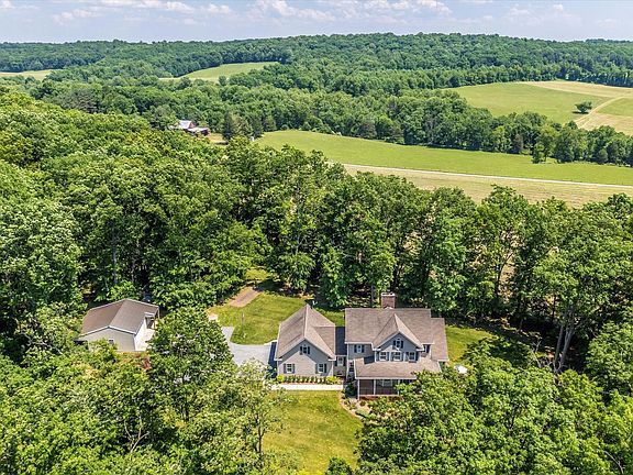 Come enjoy the good life in Mount Airy on this tranquil 6+ acre, glorious property where you can enjoy nature and the outdoors with plenty of room for your cars, trucks, recreational vehicles with the 3-car attached garage and 2-car detached garage. This unique custom-built home, which was built by current owners, is perfectly nestled where you can take in the serene views of the adjoining farmland pastures and woods that outline the perimeter of the property from the inviting wrap-around front porch or the handsome hardscape patio that spans the rear of the house. This impressive floorplan is sure to please with its open and spacious concept and main-level owner’s suite. The centrally located family room features a stunning floor-to-ceiling stone fireplace that is flanked on both sides by atrium doors and Palladian windows that invites in natural light, offers tranquil views of the outdoors, and leads to the expansive hardscape patio. The kitchen opens to the family room and features gorgeous cherry cabinetry, lots of granite counter tops, stainless appliances, and a large island with seating that is perfect for preparing your favorite meals and gathering and entertaining. The breakfast room features an atrium door to the front porch and is adjacent to the dining room graced with a beautiful bay window facing the front porch. The owner’s suite is accented with a bay window with plantation shutters, luxurious spa bathroom with dual sinks, tile shower, soaking tub and walk-in closet. The ample laundry room and half bath compete the main level. Upstairs, you will love working from home in the open loft area that overlooks the family room and looks out the Palladian windows where you are surrounded by the beauty of nature. Two additional upstairs bedrooms are connected by a Jack & Jill bath with two separate sinks. The expansive lower level basement offers great storage space and is waiting to be finished to fit your wants and needs and is equipped with nine-foot ceilings, plumbing rough-in for full bath, windows, and a walk-out sliding door to another patio. Enjoy relaxing in the shade on the front porch or grilling and entertaining on the back patio complete with hot tub! The open, level yard provides lots of space for pets and play and the chicken coop also conveys! The yard is meticulously landscaped with lush plants that provide a variety of blooms through the seasons. This home and location offers peace and privacy yet is close to shopping, dining, nearby fine wineries and breweries, and close to major commuter routes to Baltimore and DC. Truly a special property and a great opportunity for car enthusiasts, animal lovers, and anyone who wants to enjoy the best of country living!