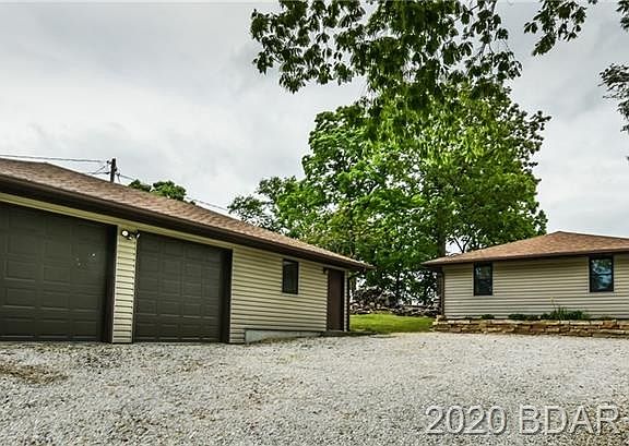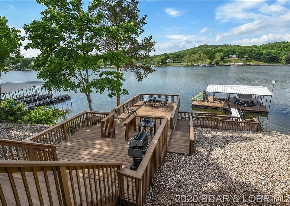 ONE LEVEL LIVING with an amazing view of the Little Niangua. This lakefront property sits on a beautiful lot with a 2 CAR GARAGE with a workshop! Home features a beautiful kitchen with custom cabinets, gas range, granite countertops, stainless appliances, and a newer expansive deck with many sitting areas to take in the amazing view! The living room has a wood burning stove & newer carpeting (2019). The Master suite has been recently remodeled with a wall separating the bathroom and adding a large walk in shower. The other 3 bedrooms are on the opposite side of the house with hall bath. The dining area has many windows that provide an amazing view of the lake. The roof is was also replaced in 2014. The 2 well dock which sits in deep water has a 10X28 boat slip with hoist and a smaller slip with a hoist for PWC's. Also has a paved road all the way to the door and plenty of parking in the driveway. Put this property on your list to see today, you won't be disappointed!!