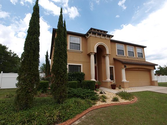 A beautiful Mercedes built home in Ocala Waterways is an open floorplan, 4 bed, 3.5 baths with 2 bonus rooms. Extras including a large center island & granite counter tops, huge pantry, inviting great room with views of pool & patio. A spacious master suite w/tray ceiling, large walk in closet and master bath with whirlpool tub. The upstairs boasts a huge game room with adjoining media/theater room with 100'' screen & Dolby 5.1 surround sound. The backyard oasis features a fantastic entertaining patio with multiple sitting spaces, salt water ground pool with upper deck and waterfall feature. Smart Home Technology for security and comfort. Concrete curbing landscaped and vinyl fencing for a private, relaxing retreat. This home is meticulously and lovingly maintained, a must see