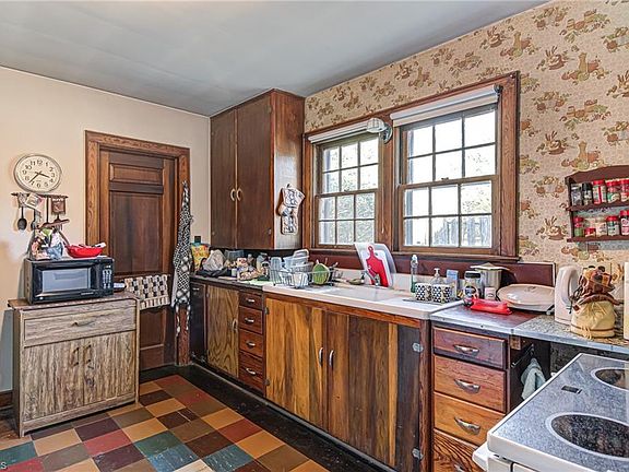 Vintage Home with numerous period features on a large lot; conveniently situated minutes form major roadways~Great potential in Walk up Attic with over 800 SF to expand~Nostalgic Rocking chair front Porch sets the tone as you enter this beloved family home~ You will appreciate nice-sized Living Room and formal Dining rooms~ Eat-in Kitchen has plenty of Cabinetry, Large Pantry and Vintage Farm Sink~The Detached Carport features wired workshop and unfinished room on upper level~Sold As Is.