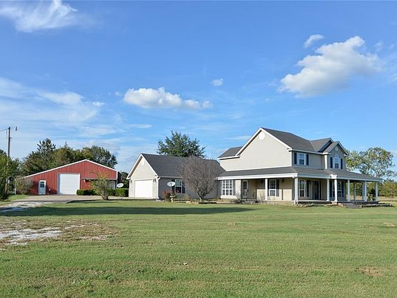 This 3 bedroom 2.5 bathroom house with wrap around porch sets on 19.5 acres just mins from Fort Smith, AR. Formal dining, large living area with high ceilings, large master bedroom with walk in shower and jacuzzi tub. Upstairs is the 2 guest bedrooms with jack & jill bathroom. Features a detached building that has a 560 sq ft apartment with full kitchen and bathroom, a heated/cooled indoor dog kennel, and room to store a RV/5th Wheel. The property also has 650 sq ft covered pole barn with two ponds.