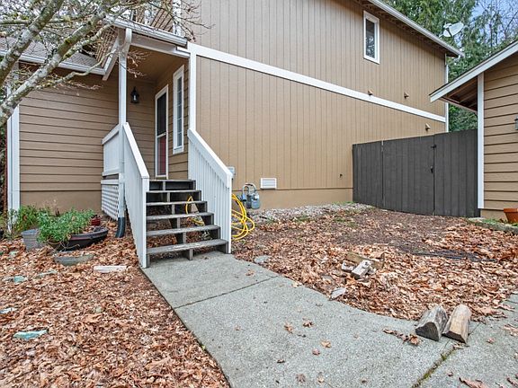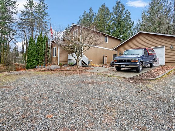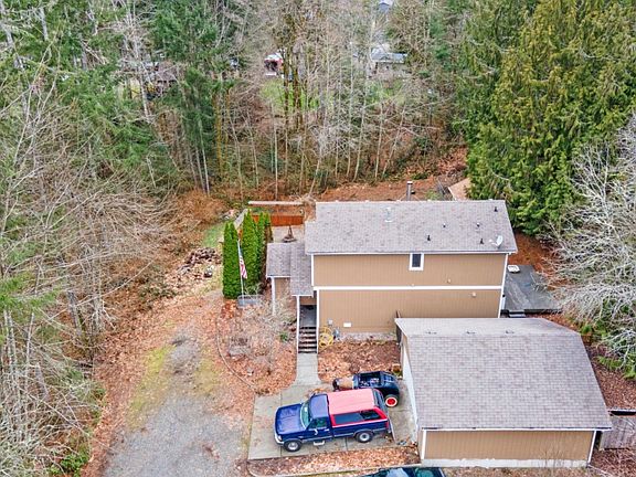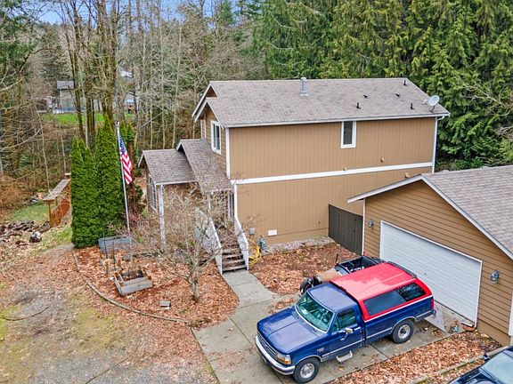 Welcome to this private two-story home on a picturesque lot! Nicely sized home sits on over 1/3 acre that features garden beds, a dog run, above-ground sprinklers, large deck, heated 2 car garage, paved driveway + extra parking, spacious shed, & cozy fire pit! Enjoy the warmth & efficiency of natural gas heat or fire up your own on the woodstove! The main level features open concept living spaces with stunning genuine Hickory hardwood floors, dining space, kitchen with gas stove and eating space, and living room. Upstairs you'll find 3 generously sized bedrooms, centrally located laundry, and a full bath. Come get a secluded feel while still being centrally located in Port Orchard!