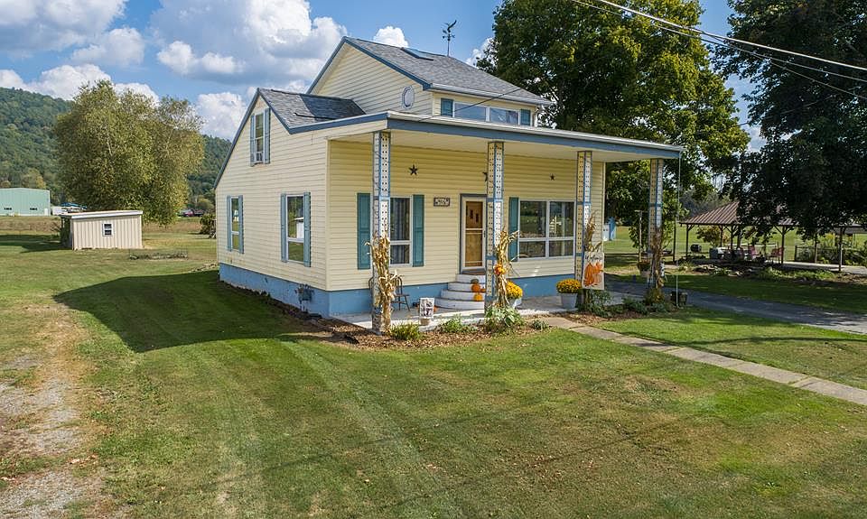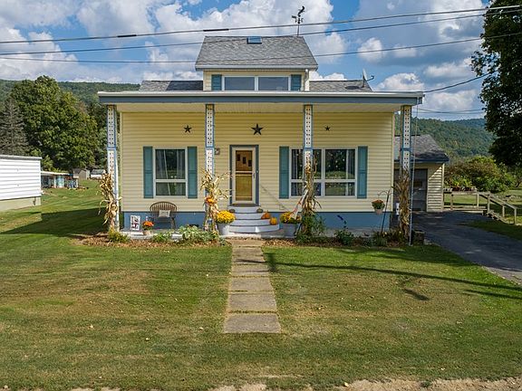An architecturally unique Cape Cod located at a dead-end road, offers both privacy and convenience, just minutes from downtown Corning and Campbell. This unique property features 3 spacious bedrooms and 2 updated bathrooms. Large newly finished family room off the back, perfect for hosting gatherings or events. Additionally, the property includes a 4-car detached garage with a fully finished second floor with bathroom , formerly home to a chocolate company. The space meets Ag & Markets standards and is licensed for food manufacturing, offering an exciting opportunity for business ventures. The second floor can also be easily converted into an apartment, providing an excellent income-generating option. Additionally property has two driveways , a carport , pavilion and multiple sheds.