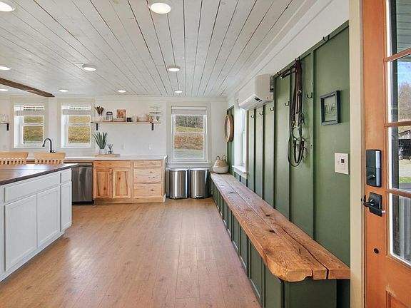 Colonial farmhouse nestled among the most beautiful rolling hills. Set off the road beyond picturesque white fencing and entirely updated top to bottom with care. Front porch overlooks the property, pond, and distant countryside. Front door opens to a spacious, custom kitchen with massive island, double range, pantry, and bench seating. Sink windows overlook the freshly graded yard and riding arena bordered by pines. Light-filled living area with cozy wood stove, breakfast nook, and doors out to the stunning scenic views. A fourth bedroom/office sits off the living room. All three large bedrooms are upstairs with a luxurious primary suite, walk through closet, and deep soaking tub. The mudroom separates the main house from the beautifully and efficiently designed extra in-law suite. Huge, clean basement for storage needs. Pressure washed 3 story barn with multiple-use rooms and stalls. Large pond with distant views, naturally maintained and perfect for swimming. Ask for virtual tour.