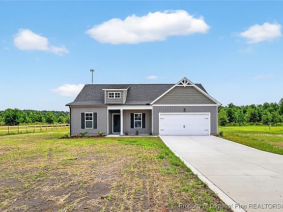 A&G Residential Presents The Gable plan. This ranch plan has a spacious main living area and and has a split Floorplan design. It features 3 bedrooms and 2 bathrooms. The kitchen is open to the living room and includes granite countertops, stainless steel appliances, and an island with breakfast bar. The dining area is adjacent to the kitchen. The owners suite includes double vanities and a large walk-in closet. On the exterior you will find a covered front porch and rear patio, perfect for enjoying the outdoors! Situated on a 2 acre lot in the Cape Fear HS District. No city taxes! Short drive to Ft Liberty