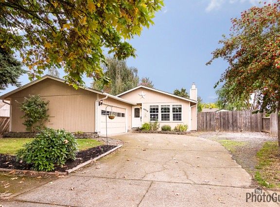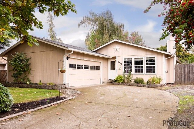 Inviting and Updated Home for Sale in an Established West Eugene Neighborhood. The New Laminate Floors Throughout, Vaulted Ceilings, and Cozy Pellet Stove make this House feel like a Home! The Kitchen Features Trendy Concrete Counter Tops and Travertine Tile Back splash! The Hall Bathroom has been Updated with a Tile Shower, and the Master Suite Features a Large Closet, Ceiling Fan and Full Bathroom with Ample Storage and a Walk in Shower. The Fenced Backyard offers a Raised Garden Bed, a Weeping Willow, a HUGE Deck, RV Parking and 2 Sheds. This Home is also wired for a Hot Tub, it has a BRAND NEW Roof, and a Newly-Seeded Area behind the Home! Plenty of Storage in the Garage, too! See this Sweet Abode in Person.