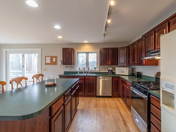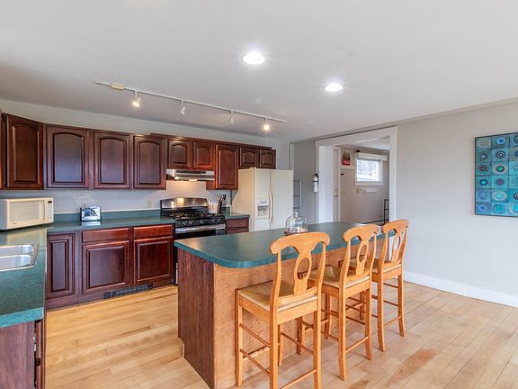 This is a very special location on Darling Hill Road in Burke. The 7-acre property includes 1,145' of road frontage and a surveyed view easement across the road where no structure may be built, assuring that the amazing view of Burke Mountain will not be interrupted and your privacy assured. The original home was built in 1910 on a full basement. A two-story addition built about 1995 increased the living space to 1,800 square feet and created the combined kitchen and dining area on the first floor and a primary suite with ¾ bath on the second floor. The L-shaped living area offers space for multiple seating areas, a glass-front woodstove for chilly evenings, and sweeping views of Burke Mountain and pastoral meadows. A large laundry room and ¾ bath complete the main level. In addition to the primary suite, there are 2 more bedrooms and a ½ bath upstairs. The acreage is open and includes stone walls and several apple trees. The deck wraps 2 sides of the newer section of the house and providing great barbecuing space and front-row seats for watching the sunrise and relaxing in the afternoon sun. Quick and easy access to Kingdom Trails from this location, and you’re just 2 miles from the heart of East Burke Village and 4 miles from Burke Mountain. Additional options for outdoor recreation nearby are many, from swimming to snowmobiling, hiking, boating, and so much more. Come find your place in Vermont’s Northeast Kingdom!