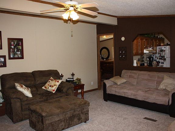 Well kept home located on 6.5 acres of rolling-wooded land that is ideal for hunting. Home is cute and has a neutral color pallette with a 3 BR, 2 BA split floor plan. Kitchen and dining area has open feeling and living room is a nice space w/lots of natural light. The 6.5 acres of rolling acreage is well manicured and ready to hunt w/deer stand. Walnut trees line the southern border of this property - secluded area - quiet! Home has oversized deck overlooking the acreage with mowed paths through the woods