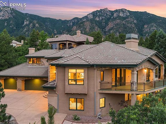Nestled within the prestigious Broadmoor Resort Community, this exceptional residence offers a blend of luxury, privacy, and breathtaking views. Tucked away in a serene setting, this fully reimagined 2019 masterpiece showcases refined elegance with exquisite attention to detail and the highest caliber of craftsmanship. Step into a soaring great room with vaulted ceilings and exposed beams, where an open-concept design seamlessly connects to a chef-inspired kitchen and dual dining areas-a cozy hearth-side breakfast room and a formal dining space. The fabulous kitchen features dual mirrored islands with two 6-burner gas ranges, dramatic fusion-slab granite countertops, and floor-to-ceiling cabinetry. A spacious walk-in pantry, premium stainless appliances, and a picture window framing mountain vistas elevate this culinary space to extraordinary. Enjoy year-round outdoor living with panoramic views of both the city skyline and surrounding peaks on the large wrap around deck. The main-level primary suite is a private sanctuary, with direct deck access, tranquil city views, and a spa-inspired en-suite bath. Indulge in a free-standing soaking tub, double rain showers encased in rich marble tile, vessel sinks, backlit mirrors, and designer finishes throughout. A dry sauna completes the retreat-like experience. A versatile fifth bedroom or private executive office offers flexible living options just a few steps above the main linving area. A fully renovated lower level impresses with a spacious family room featuring a fireplace, wet bar, and hidden wine room and three generously sized ensuite bedrooms with walk-in closets and luxurious bathrooms. A walk out bonus room with barn doors opens to a private home gym or second office. Additional amenities include a well designed mudroom with custom built-ins, an oversized four-car garage with workshop space. Located in a secure, gated enclave with 24-hour live guards and optional Broadmoor Golf Club membership. Welcome Home!