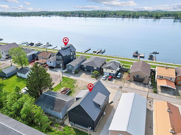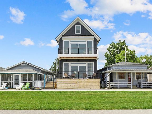 THE one! You will not find another new build at Buckeye Lake with this kind of style! It has a fresh aesthetic, from a dramatic steel staircase, up to 14' ceilings, double islands with cascading counters, to statement plaster mantle and range hoods. Bright, airy and open 3,200 sf with stunning views of the lake to be enjoyed across the 2nd and 3rd floors. Upscale features with impeccable attention to detail include white oak floors throughout, industrial style frig banked by tall wine coolers, striking 3 story light fixture and custom built-ins. Owner's Suite occupies the 3rd floor, opening onto private balcony and owner's bath/shower for the ages! Rare additional lot with 4 car garage and 1,200-sf Coach House can house your overflow guests and all your toys. Enjoy lake living at its bes