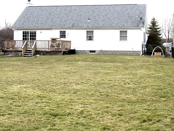 Well maintained 3 BR, 2 full BA Ranch. Lots of upgrades in this Custom Built Model. Vaulted Great Room with gas fireplace, ceramic floors & glass tile back splash in Kitchen, two car attached Garage, 750 sq.ft. of additional finished living space in Basement (possible 4th BR), fenced in backyard, covered front porch, rear deck, large out building w/electric & propane heater, & pool. All this sits on 1 acre with private rear woods.
