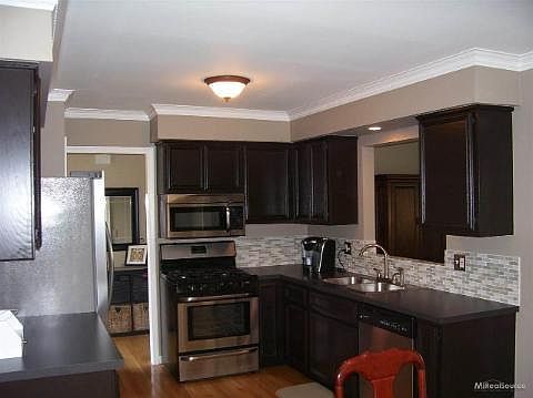 Outstanding 3 bedroom 2 full bath Macomb ranch. Features include updated kitchen w stainless steel appliances 2011. Beautiful hardwood flooring in kitchen, great room, hall and two bedrooms. Recent remodeled baths. Recent remodeled 1st floor laundry/mudroom with built-in storage. Recently painted neutral interior. Finished basement with gbw, new sump pump w/battery backup and newer hwh. Newer dimensional roof. New windows and doorwall 2012.