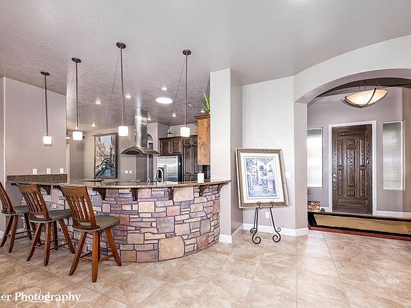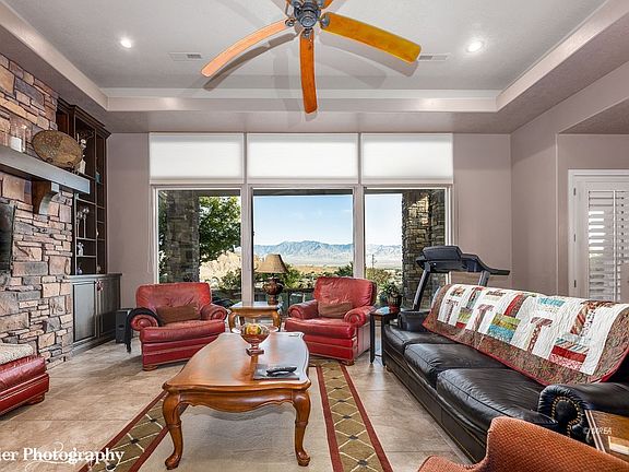 Don't miss out on seeing this beautifully designed spacious 3 bedroom 2 1/2 bath home in the gated community of Falcon Crest. Original owner of this open concept upgraded home with a dream kitchen, hidden walk-in pantry, upgraded stainless steel appliances, built in cabinets in the breakfast nook area, water softener, reverse osmosis, 2 heat pumps, white shutters throughout the home, decorative stone wall in living room with a large picture window to enjoy the spectacular mountain views. The laundry room has built in cabinets and sink. Bay windows in dining and front bedroom, the main bedroom has a large custom closet. Title throughout except carpet in bedrooms. The east facing backyard is elevated with mature landscaping covered patio and amazing views and is wired for a spool. The 789 sq. ft. 3 car garage has large single door with extra built in cabinets for storage. This is a must see, impressive the minute you step in.