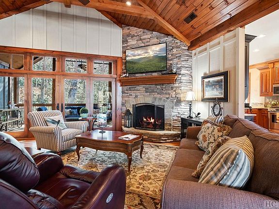 Perfection on the Plateau! This rustic and mountain chic 3BR/3BA upper level condo with ELEVATOR access was thoughtfully designed and built with attention to detail. From the moment you enter, you will be wowed! An open living and dining room showcases a beautiful vaulted tongue and groove ceiling and a cozy fireplace. Enjoy snuggling in with a good book by the fire or head out onto the large and private screened porch and snuggle under a blanket next to fireplace #2 and listen to the sounds of nature surrounding you. One of our favorite Birches floor plans, this unit features an oversized kitchen with two refrigerators, a wine refrigerator, a beautifully milled built-in wet bar and lots of cabinet space. It's a perfect entertaining area as it offers space at the breakfast bar for chatting while cooking and leads to the grilling deck that features a gas line in place for the grill. The large master suite features a generously sized walk in closet and a spacious and comfortable bath with heated floors. The separate guest quarters features two additional bedrooms (one with ensuite bath) and baths, both of which also have heated floors. This meticulously maintained condo is offered furnished (a few exclusions apply) and is turnkey. The one car carport and a golf cart carport provide shelter for your vehicles if rain disrupts our wonderful weather. The HOA maintains the exterior and roof, making mountain living easy for you! There is a reason there is no inventory in Wildcat Cliffs! People love the club and love living in this wonderful community! Come enjoy our little slice of heaven here on the Highlands-Cashiers plateau! Membership to Wildcat Cliffs Country Club is appurtenant to the property.
