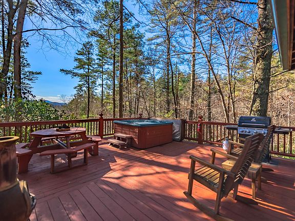 Welcome to "Serenity Pines!" A true D-log Sisson original in the heart of Cherry Log MTN, this charming cabin sits perched above a stunning longe range mountain view with a wraparound porch and party deck complete with a hot tub and outdoor entertainment space! Inside, the cabin is complete with two bedrooms, one bathroom, and an additional sleeping loft! Cozy living room and kitchen/dining are perfect for the cabin life. With a stone F/P, rustic finishes, and sold furnished, this cabin won't last long! Perfect for a second home, full time residence, or rental investment, minutes from one of the many Cherry Log MTN recreational lakes, hiking trails, and minutes to Downtown Blue Ridge and Ellijay - this one is hard to beat!