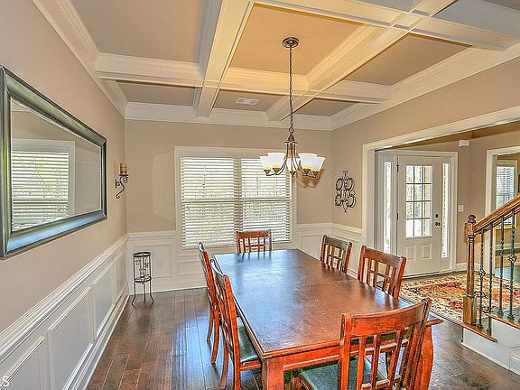 Beautiful home on 1.1 acre level lot. Rare 5 bedroom home on slab. Coffered ceiling in separate dining room, gorgeous hardwood floors on the main level, hardwood stairs, granite countertops in kitchen & on island, in law suite w/full bath on main level off kitchen, two story foyer & family room, laundry room upstairs. Beautiful covered/screened in back porch. Master bedroom is large w/dual granite countertop vanities in master bath, separate tub, tiled shower, walk in closet. Tile floors in all bathrooms. Great neighborhood w/large lots & great school system.