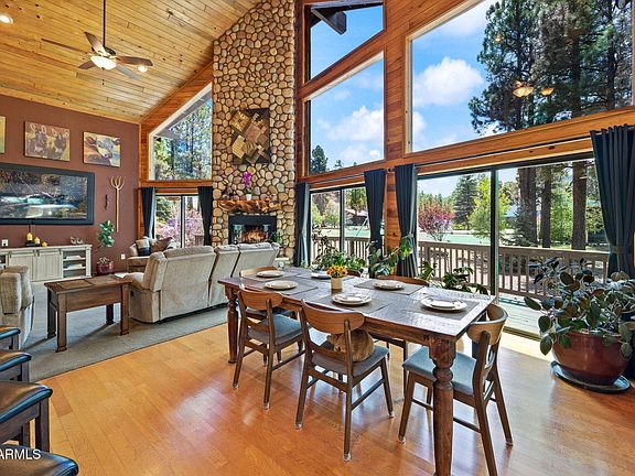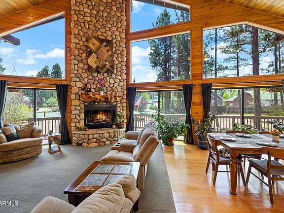 This A-frame 'Furnished' mountain retreat offers the perfect balance of rustic elegance and modern comfort. With two ensuite bedrooms, a spacious guest room, an additional bathroom, and a loft area with bonus space, there's plenty of room for relaxation and entertaining. The soaring T&G ceilings and warm wood floors create an inviting atmosphere, while towering windows frame breathtaking views, filling the space with natural light. At the heart of the home, a grand rock fireplace serves as both a striking centerpiece and a cozy spot to unwind after a day outdoors. In the living area, large windows and rich wood paneling complement the warm glow of a crackling fireplace. Comfortable seating surrounds a rustic stone hearth, creating the perfect setting for relaxation. Read 'more' Adjacent to the dining space, natural elements and thoughtful details enhance the home's charm. The seamless flow from indoor to outdoor living ensures every moment spent here is an experience to remember. The oversized kitchen features generous counter space, premium appliances, and an expansive island, making it ideal for hosting family and friends. Sliding doors lead to a welcoming deck space, where you can take in the serenity of the tall pines and the expansive yard. Whether enjoying your morning coffee or gathering under the stars, this home is designed for effortless mountain living. The upstairs loft area offers bonus space perfect for a reading nook, additional entertainment, or even a home office, while an oversized ensuite provides a private sanctuary with luxurious finishes and ample storage. For those who love the outdoors, the property boasts a dedicated garden space, inviting you to cultivate fresh produce or colorful blooms. A firepit surrounded by seating creates the ultimate spot for storytelling and stargazing under the vast sky. Wildlife frequently wanders through the area, offering glimpses of nature in its purest form. This home is not just a retreat, it's a lifestyle, surrounded by the beauty of nature and designed for effortless mountain living. A list of items that do NOT convey available. Imagine living in the White Mountains of Arizona where you have 4 beautiful seasons and where you can breathe in the fresh mountain air and enjoy the 40 lakes and over 600 miles of rivers and streams. In addition to the amazing fishing, this area has one of the most extensive trail systems in the southwest for hiking, biking, horseback riding, quadding and more. Sunrise Ski Resort is also just 40 minutes away with 3 beautiful mountains to ski, snow board or sled. If shopping is your interest, you will love the antique stores and the multitude of arts and craft shows that happen in the summer. The music festivals have something to fit everyone's enjoyment. Do you love to golf? There are 7 amazing golf courses, 3 that are public. The White Mountains, where this home/cabin is the best kept secret of Arizona! Come and explore and enhance your living! Pinetop-Lakeside was also voted 'Best Cabin Region in the U.S"... Embrace the MAGIC!