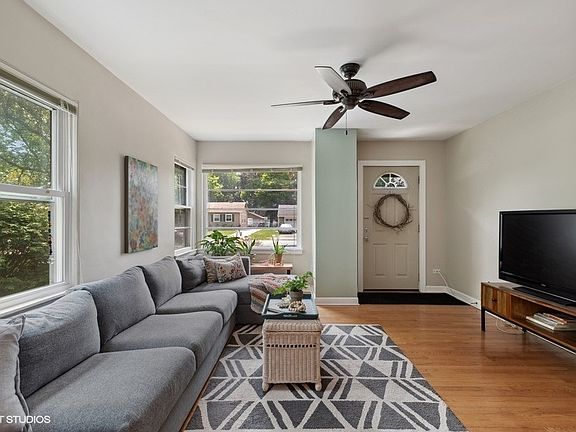 Super sweet in-town Charmer! 3 bed, 1 bath home features finished basement, new roof, new A/C, new Furnace and a newer fridge! Hardwood floors and lots of built-in storage offer nice finishes to the first level. Great floor plan, with warm and bright family room, galley kitchen and dinette area. 2 bedrooms located on the main level share a quaint bath. A true primary suite with expanded area perfect for an office/seating area or nursery! Basement houses the mechanicals and laundry, as well as additional family room with large warm fireplace and 3rd bedroom. Plenty of room in mechanical area for a bathroom if desired! Detached 2 car garage. Backyard is large and has mature trees! An enormous space to enjoy, entertain, play and garden! Great location, close to train, parks, beaches and schools! Minutes from it all, stop in and take a peek!