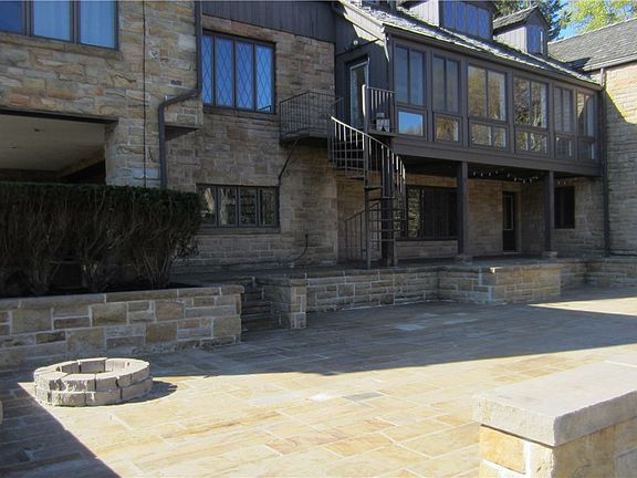 Stately stone home featuring a multi-level stone patio with a built-in grill and firepit. Relax outdoors on the grand patio overlooking the backyard with 2 adjoining wooded parcels to give extra privacy. This 5-6 bdrm home boasts many characteristics ~ Large gourmet kitchen open to the dining area featuring a beautiful clerestory window & skylights. Massive living room w/pellet fireplace that connects to the sunroom. Master bdrm also opens to the sunroom, has 2 cedar closets, master bath w/duel sinks, shower, jetted tub, bidet and is also attached to the 2nd bdrm. Upper level has 2 bdrms w/private bath. Lower level has 2 bdrms or can be used as bonus rooms with private bath & closet. There is also a laundry room, family room w/wood fireplace & wet bar. Perfect area for an in-law suite or rental as it has a separate outdoor entrance and is approx. 20 minutes from resorts.