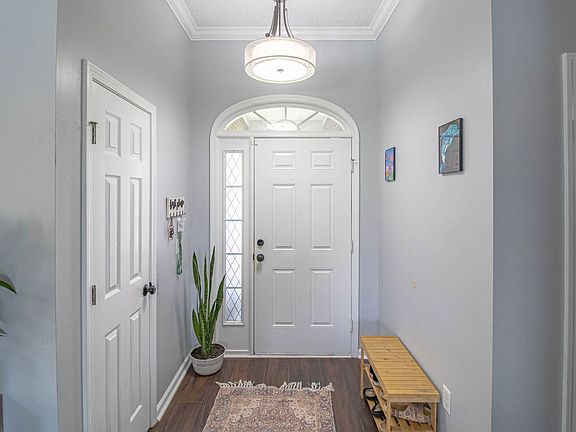 This 3 bedroom, 2 bath ranch-style home in Richmond Hill offers a picturesque setting with water views. The floor plan includes vaulted ceilings in the living room and kitchen, creating a spacious and airy feel. The white kitchen with black hardware accents, granite countertops, and large eat-in space is both stylish and functional. The main bedroom features a trey ceiling, walk-in closet with custom shelving, and an en suite bath with tile, upgraded double vanity, garden tub, and separate shower. The second bath also boasts an upgraded vanity. Additional features include a 2 car garage, patio in the back, and water views from the living room, eating area, and main bedroom. Enjoy the convenience of fishing from your backyard and neighborhood amenities such as a pool and playground. The home is within walking distance to elementary schools and is conveniently located near Savannah, Ft Stewart, and Pooler.
