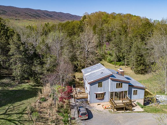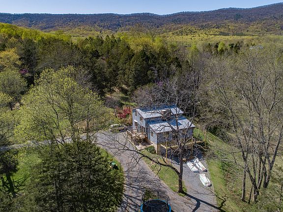 Take the ''road less traveled'' into the magical realm of mountains, forests, streams and rolling pastures. At the foot of the famous Jump Mountain, where you can feel the beauty of nature year round, is almost 8 acres pf Paradise. A perfect blend of fenced pasture, playground, parkland and gardens, with a hilltop campsite featuring lovely winter views. Only 30 minutes from Lexington.The contemporary home is filled with light, and features elegant trim work in a variety of eye-pleasing woods. The entry foyer to the home is a true work of art. There is a magnificent stone fireplace in the living room rising 16 feet from floor to ceiling. Brand new, expansive, wrap-around deck is built off the living room. More details are in the Documents attached to the Listing.